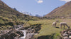 Alpacas have a minimal environmental footprint compared to other fiber-producing animals. They graze gently without damaging root systems, require less water, and produce more fiber per animal than sheep.