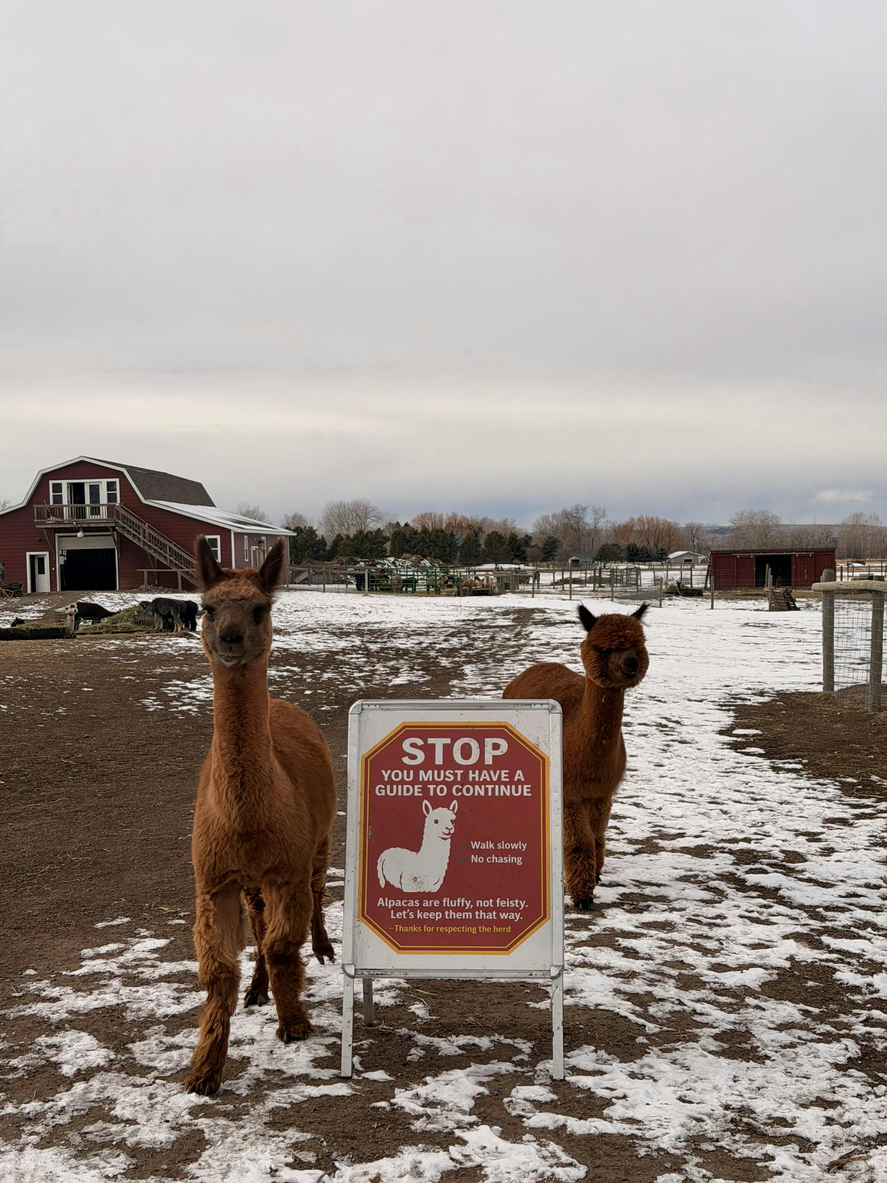 For families with young kids, we recommend a ratio of at least one adult per two children to help guide safe, respectful interactions with the animals and the environment. This is a working farm—and we appreciate your help in keeping the experience calm, safe, and positive for everyone involved (including our alpacas!).